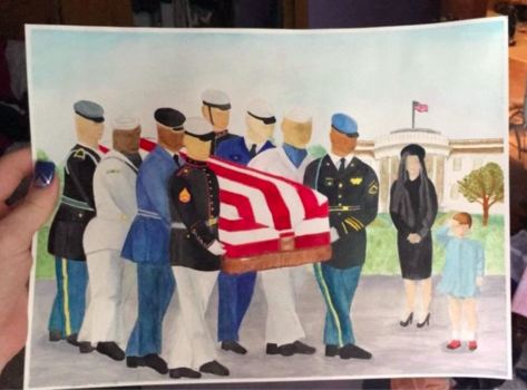 Congratulations to Sierra for placing first in “The Young American Patriotic Art Awards”. Sierra’s watercolor titled “Solemn Salute” depicts President Kennedy’s son saluting his father in his final act of love and patriotism. The contest is sponsored by the Legion Auxiliary. “Solemn Salute” will now compete at state and if she places first in state her piece will then compete at the National level.