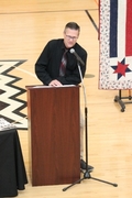 community service. The inspiring conclusion of the ceremony saw local veteran (and Diller- Odell bus driver) Bill Behrends being presented with a ‘Quilt of Valor’. Mrs. Rebecca Zaboktrsky (a member of the local ‘Quilts of Valor’ organization) explained to the crowd how the ‘Quilts of Valor’ was an inspiration of a mother, whose son was